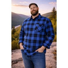 Niebieska koszula flanelowa Bragio z długim rękawem – 100% bawełna, gramatura 170 g/m². Klasyczna krata, kołnierz usztywniony, kieszeń na piersi, mankiety na guziki. Rozmiary XS–7XL.