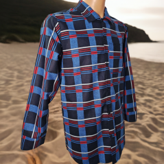 Niebieska koszula flanelowa z długim rękawem – 100% bawełny, gramatura 170 g/m². Przyjemna i ciepła — idealna na chłodne chwile w domu, przy ognisku lub w lesie. Produkt polski.