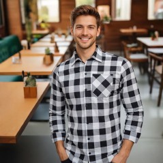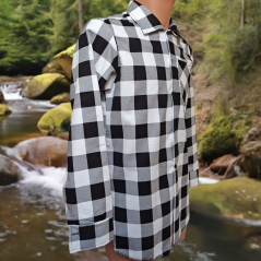 Koszula flanelowa męska w biało-czarną kratę, uszyta z 100% bawełny o gramaturze 170 g/m². Miękka, wytrzymała i wygodna – idealna na wędrówki i na co dzień.