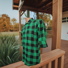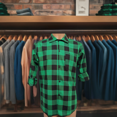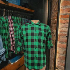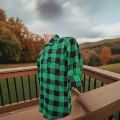 Koszula flanelowa Premium Tkana 190 g/m² w zielono-czarną kratę. Uszyta z mieszanki 70% bawełna i 30% poliester — ciepła, trwała i idealna do pracy, na chłodniejsze dni i aktywności na świeżym powietrzu.
