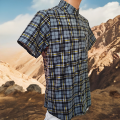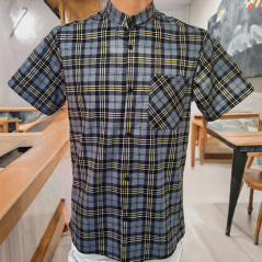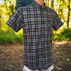 Szara koszula flanelowa B-27 z krótkim rękawem – 100% bawełny, przewiewna i wytrzymała. Doskonała na bushcraft, biwak, trekking i wypady w teren.