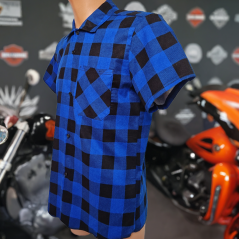 Koszula flanelowa krótki rękaw niebiesko czarna Standard